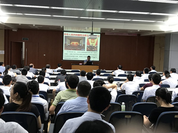 为深入学习宣传贯彻习近平新时代中国特色社会主义思想,全面贯彻落实党的十九大和十九届二中、三中全会精神,根据集团公司党委关于全体党员集中学习宣传贯彻实施宪法的要求,6月30日, 在中国共产党建党97周年之际,由公司党委组织部主办的东华党校(东华大学)大讲堂第四讲——“解读宪法修正案”在公司顺利开讲。