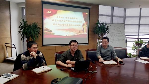 团委委员王俊同志首先带领大家从五个方面开始学习,分别是:坚决拥护党的十九大确认习近平总书记在党中央和全党核心地位,坚定不移引领央企青年始终拥戴核心敬仰核心维护核心;坚决拥护党的十九大把习近平新时代中国特色社会主义思想确立为指导思想,坚定不移用新时代新思想武装全团引领青年;坚决拥护党的十九大关于决胜全面建成小康社会、建设社会主义现代化强国宏伟部署,坚定不移引领央企青年在新时代建功立业;坚决拥护党的十九大关于推进全面从严治党向纵深发展大部署,坚定不移推进全面从严治团;坚决拥护以习近平同志为核心的党中央集中统一领导,坚定不移为党的事业团结凝聚青年。这五个方面,涵盖了十九大的核心议题,深刻领会了十九大的重点精神及要求,站在新时代中国特色社会主义全局高度,对新时代青年提出要求、寄予期望。