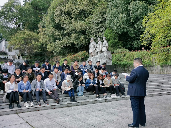 悼念活动后,公司党委副书记、纪委书记桑艳军结合两天的调研学习,为参与本次活动的全体党员上了一堂生动的党课。桑艳军指出,皖南事变发生已近80年,在今天的新形势下,重温历史、缅怀先烈,不但要重温和理解中共中央处理皖南事变的英明决策精神实质,还要深切缅怀和大力弘扬皖南新四军指战员的浩然正气和英勇拼搏精神,更要通过历史的启示,提升党性修养,强化使命担当。
